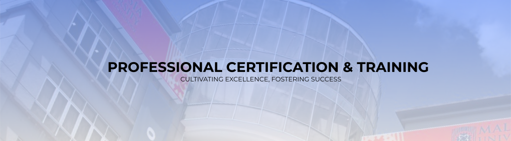 The Professional Certification & Training at Malaysia University of Science and Technology (MUST) is built upon a foundation of global relevance, industry alignment, and academic excellence. We specialize in delivering certified, accredited programmes that meet international standards, empowering both individuals and organizations to thrive in today’s dynamic landscape. Whether you’re an individual seeking career advancement or a corporation investing in workforce development, our training solutions are designed to validate expertise, sharpen skills, and drive measurable impact. From technical upskilling to leadership development, our offerings span diverse sectors and roles, ensuring every participant gains practical, specialized knowledge that enhances employability, performance, and confidence. At MUST, we believe professional growth is a lifelong journey. The flexible programmes are designed to support ongoing learning, enabling learners and teams to maintain competitiveness, adaptability, and alignment with international standards.